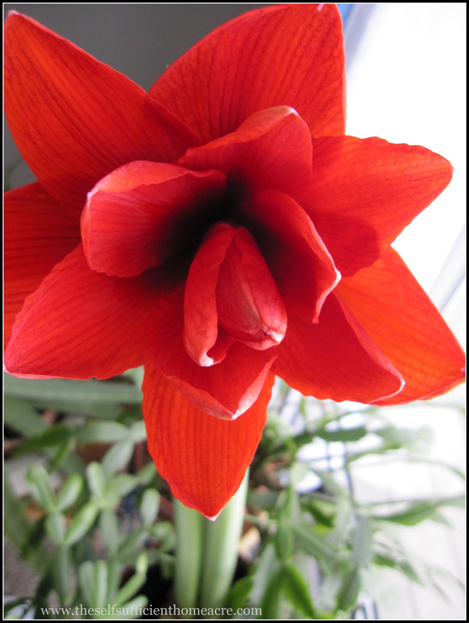 I hope it brightens your day a bit to see this double red Amaryllis I planted in the fall, now sharing it’s beauty!