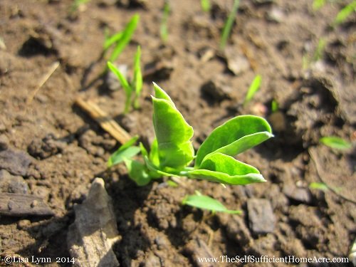 Peas love a rich humus soil and cool conditions. It’s best to plant them soon after you have the bed worked up in the spring. They may not germinate until the sun warms the soil, but they’ll be ready and raring to go when it does. You can germinate your peas indoors and plant them out, but that seems like a lot of work to me. So mine won’t get any special treatment. I have never used the Rhizobium bacteria inoculant touted for beans and peas. They have never really seemed to need it. These bacteria help the roots fix nitrogen for the plant to use, and is often present in healthy soil. An inoculant might be just the thing for beans and peas planted in soil that has very little microbial life in it. Soil that has been sprayed repeatedly with pesticides and chemical fertilizers is often low in microbial life and may need an inoculant for best results with your legumes. If you’ve been improving your soil with compost and organic fertilizers, your peas are unlikely to need inoculation.